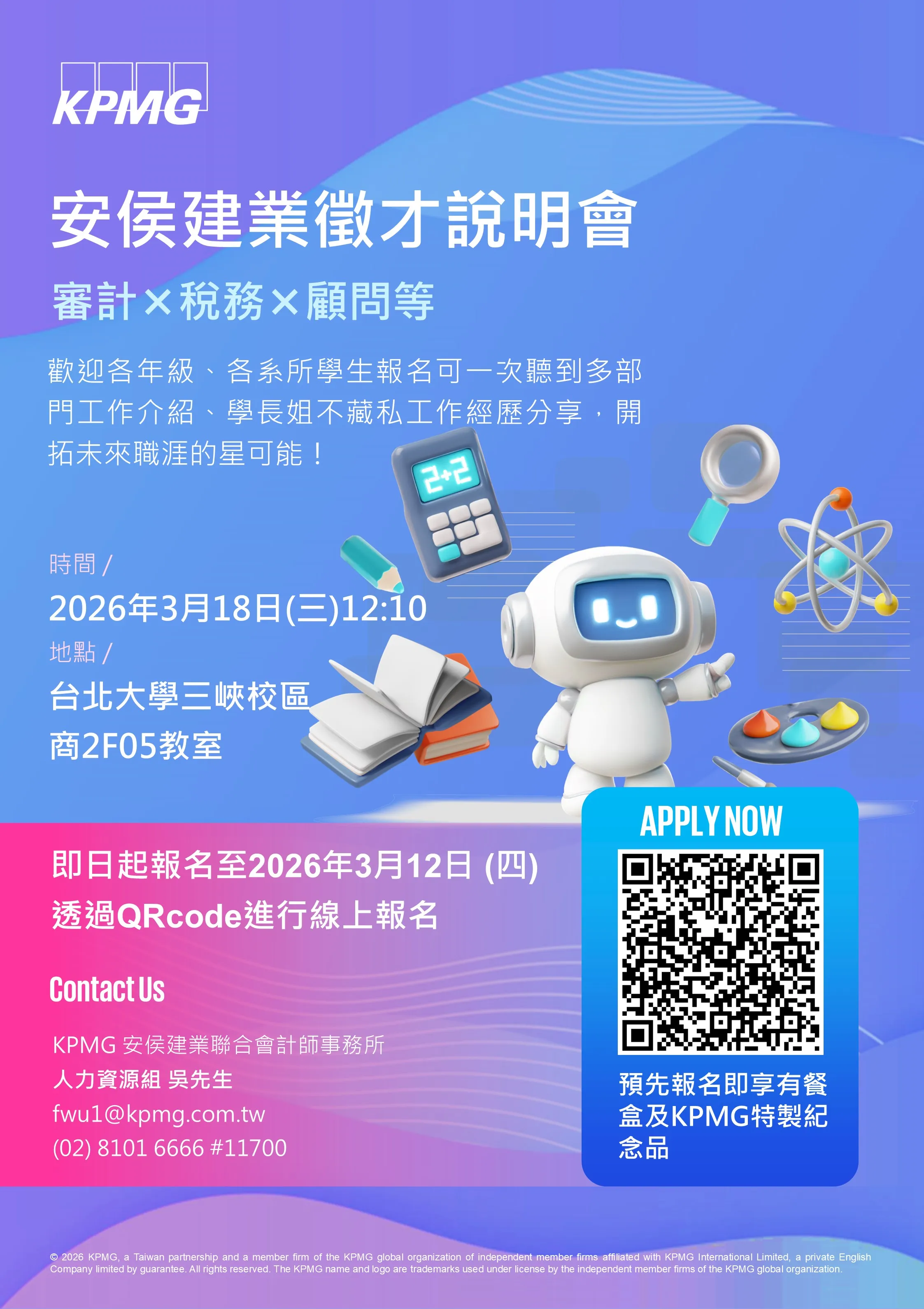 【2026 校園深耕說明會】各部門工作內容一次看懂!歡迎你來探索 KPMG!